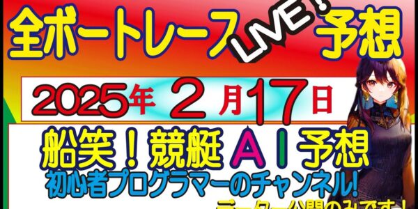 【全ボートレースLIVE予想 】2025年2月17日(月) [ 3連単 高配当狙い!】ライブ予想! 発走前に公開する!偽り無い!オリジナルの3連単予想!