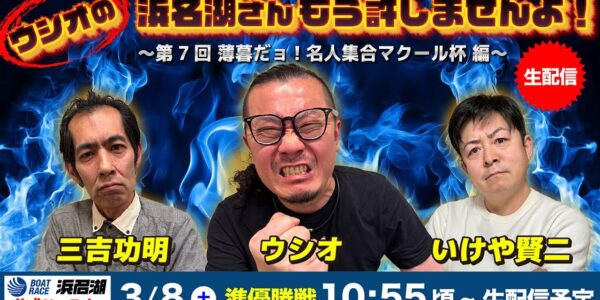 ウシオの浜名湖さん もう許しませんよ!〜第7回 薄暮だョ!名人集合マクール杯 〜 舟券予想会【3月8日(土)準優勝戦】【出演】ウシオ 三吉功明 いけや賢二