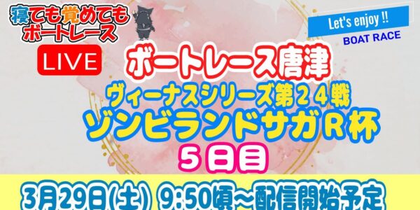 ボートレース唐津(競艇) 5日目 ヴィーナスシリーズ第24戦ゾンビランドサガR杯 【寝ても覚めてもボートレースライブ】