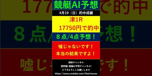 #Shorts【全ボートレースLIVE予想 】2025年4月19日予想分 結果のご案内です。ご視聴の皆様本日はお疲れ様でございました! また明日頑張りましょう! #競艇予想