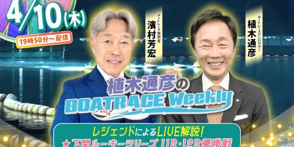 4月10日(木)19時50分から生配信!ボートレース下関11R・12R優勝戦をLIVE解説 |植木通彦のボートレースウィークリー|濱村芳宏さんがレースを紐解く|ボートレース【下関】