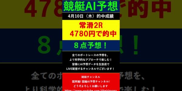 #Shorts【全ボートレースLIVE予想 】2025年4月10日予想分 結果のご案内です。ご視聴の皆様本日はお疲れ様でございました! また明日頑張りましょう! #競艇予想 #大予想
