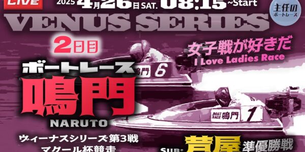 【LIVE】4月26日 ボートレース鳴門 2日目 1R~12R【ヴィーナスシリーズ第3戦 マクール杯競走】Sub: 芦屋の準優勝戦!