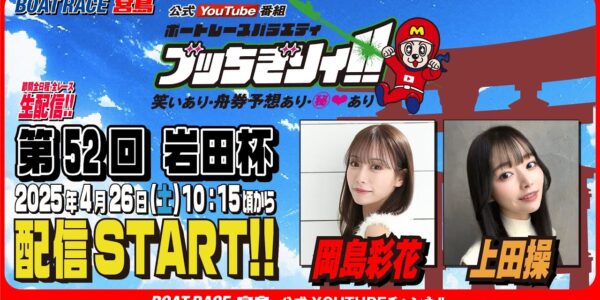 【ボートレース宮島 公式YouTube番組】 ボートレースバラエティ “ブッちぎりィ!!”【岡島彩花&上田操】