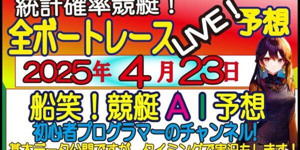 ☆全ボートレースLIVE予想 船笑!競艇AI予想 初心者プログラマーのチャンネル! 2025年4月23日(水) 穴万舟8点・低額3点勝負!のAIライブ予想!をお楽しみください】