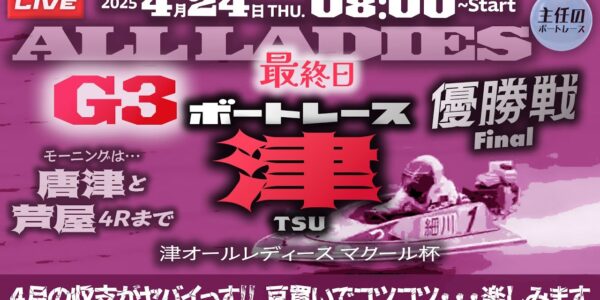 【LIVE】4月24日 ボートレース津 最終日 1R~12R 優勝戦【G3・津オールレディース マクール杯】モーニング4は唐津と芦屋!
