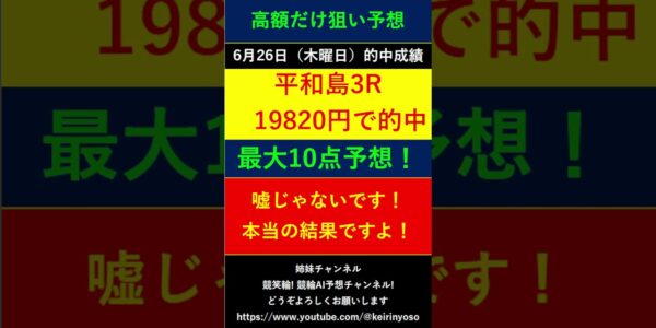 #Shorts【全ボートレースLIVE予想 高額だけ狙い予想 】2025年6月26日予想分 結果のご案内です。ご視聴の皆様本日はお疲れ様でございました! また明日頑張りましょう! #競艇予想