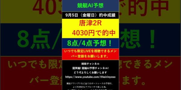 #Shorts【全ボートレースLIVE予想 】2025年9月5日予想分 結果のご案内です。ご視聴の皆様本日はお疲れ様でございました! また明日頑張りましょう! #競艇予想