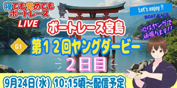 宮島プレミアムG1 第12回ヤングダービー 初日 1〜12Rのレースライブを配信…