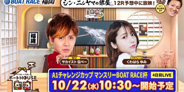 【10月22日】ペラ坊・ペラ美のボートHOUSE:A1チャレンジカップ マンスリーBOAT RACE杯【4日目】