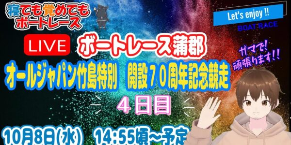 【ライブ配信・競艇・ボートレース】 10月08日(水) 08時00分頃~ ほぼ毎…