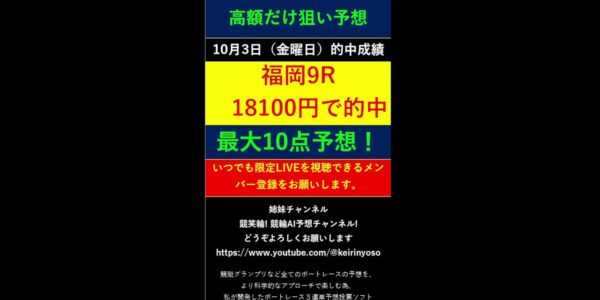 #Shorts【全ボートレースLIVE予想 高額だけ狙い予想】2025年10月3日予想分 結果のご案内です。ご視聴の皆様本日はお疲れ様でございました! また明日頑張りましょう! #競艇予想