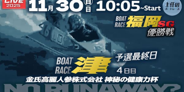 ボートレース津 4日目 1R~12R 予選最終日【金氏高麗人参株式会社 神秘の健康力杯】福岡SG&G2 ● 11月30日