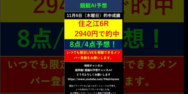 #Shorts【全ボートレースLIVE予想 】2025年11月6日予想分 結果のご案内です。ご視聴の皆様本日はお疲れ様でございました! また明日頑張りましょう! #競艇予想