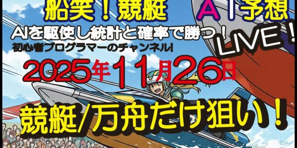 全ボートレースLIVE予想 穴万舟だけ狙いバージョン 2025年11月26日(水) 船笑!競艇AI予想 初心者プログラマーのチャンネル!
