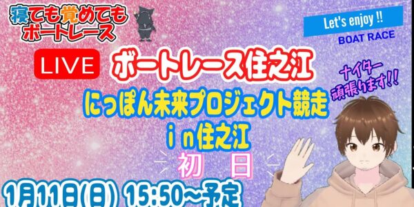 ボートレースライブ住之江(住之江競艇ライブ) 初日 にっぽん未来プロジェクト競走in住之江 【寝ても覚めてもボートレース】