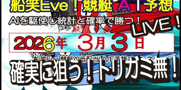 [全ボートレースAI低額LIVE予想 】 2026年3月3日(火) 船笑Eve!競艇AI低配当LIVE予想チャンネル 的中率重視!低配当のAIライブ予想!