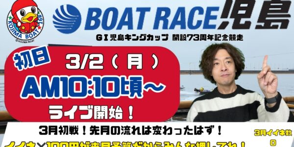 【LIVE】G1・ボートレース児島 初日 1R~12R 【児島キングカップ開設73周年記念競走】● 3月2日