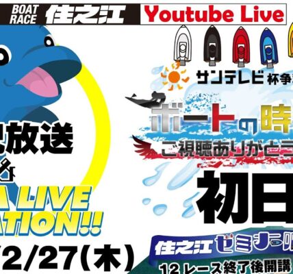 ボートレース福岡で開催される「スポーツ報知杯争奪戦」四日目を、MC:サカイスト伝ペーさんとアシスタント:爽香さんの二人で予想生配信。