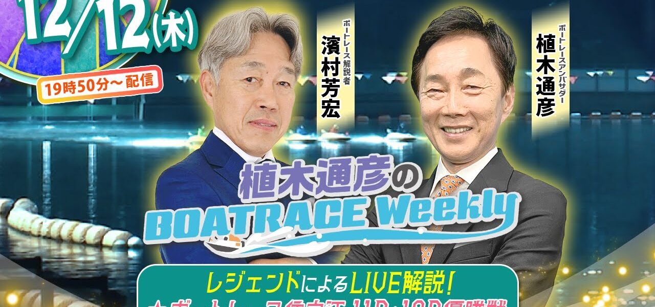 12月12日(木)19時50分から生配信!住之江マスターズリーグ11R・12R優勝戦をLIVE解説 |植木通彦のボートレースウィークリー|濱村芳宏さんが植木アンバサダーとレースを紐解く|ボートレース