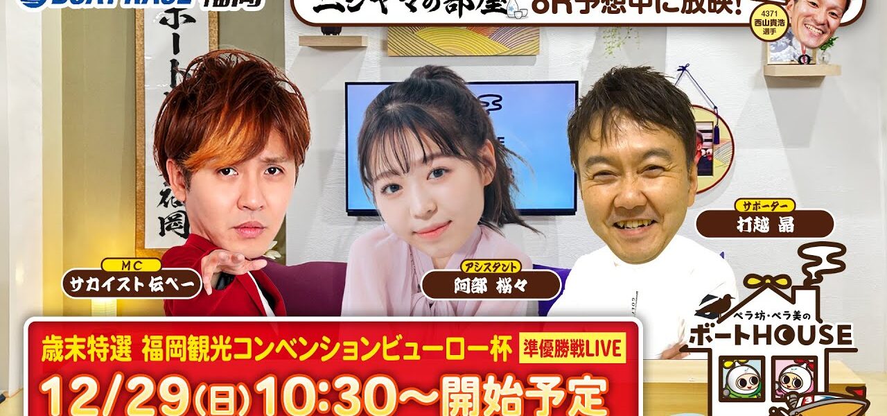 ボートレース福岡で開催される「歳末特選・福岡観光コンベンションビューロー」5日目・準優勝戦を3人で予想生配信。