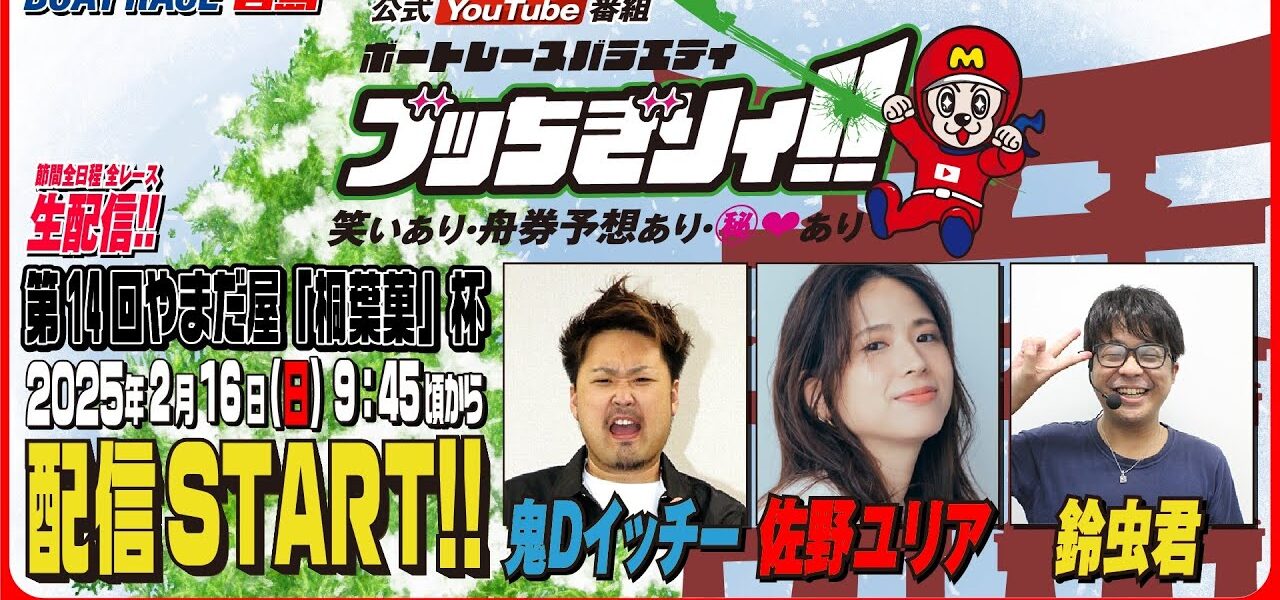 【ボートレース宮島 公式YouTube番組】 ボートレースバラエティ “ブッちぎりィ!!”【鬼Dイッチー&佐野ユリア&鈴虫君】