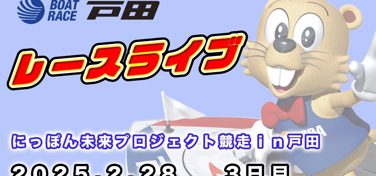 ホームページライブ2025.2.28 戸田レースライブ にっぽん未来プロジェクト競走in戸田 3日目 ライブ 2025.2.28 戸田レースライブ にっぽん未来プロジェクト競走in戸田 3日目 管理人 投稿日: 2025年2月28日 ※レース結果、払戻金につきましては主催者発表のものとご確認お願い致します ※生放送にはタイムラグが生じます、舟券購入の際はご注意ください ※回線の環境上、映像の乱れや切断、大幅な遅延が生じる場合があります ※配信が重くなった場合はご視聴の画質を下げてご覧ください 共有: Facebook で共有するにはクリックしてください (新しいウィンドウで開きます) Facebook クリックして X で共有 (新しいウィンドウで開きます) X いいね:いいね 読み込み中… 返信する コメントをキャンセルメールアドレスが公開されることはありません。 ※ が付いている欄は必須項目ですコメント ※ 名前 ※ メール ※ サイト 次回のコメントで使用するためブラウザーに自分の名前、メールアドレス、サイトを保存する。 管理人 すべての投稿を表示 投稿ナビゲーション 前の投稿【ボートレース宮島 公式YouTube番組】 ボートレースバラエティ “ブッちぎりィ!!”【ういち&松本日向】 次の投稿【LIVE】2月28日 ボートレース児島 初日 1R~12R【サンケイスポーツ杯 ~第5回児島巧者決定戦~】 こちらの記事はいかがですか? ライブ 2024.12.1 戸田レースライブ BP岡部カップ開設23周年記念・日刊ゲンダイ杯 初日 管理人 2024年12月1日 ライブ ボートレース大村公式レースライブ放送 (裏解説なし) 管理人 2021年5月9日 ライブ 【企画レースでも要注意】児島競艇場 攻略のコツ 管理人 2024年7月24日 ライブ 【LIVE】11月27日wed. ボートレース鳴門 2日目 1R~12R【FVジャパンカップ競走】 管理人 2024年11月27日