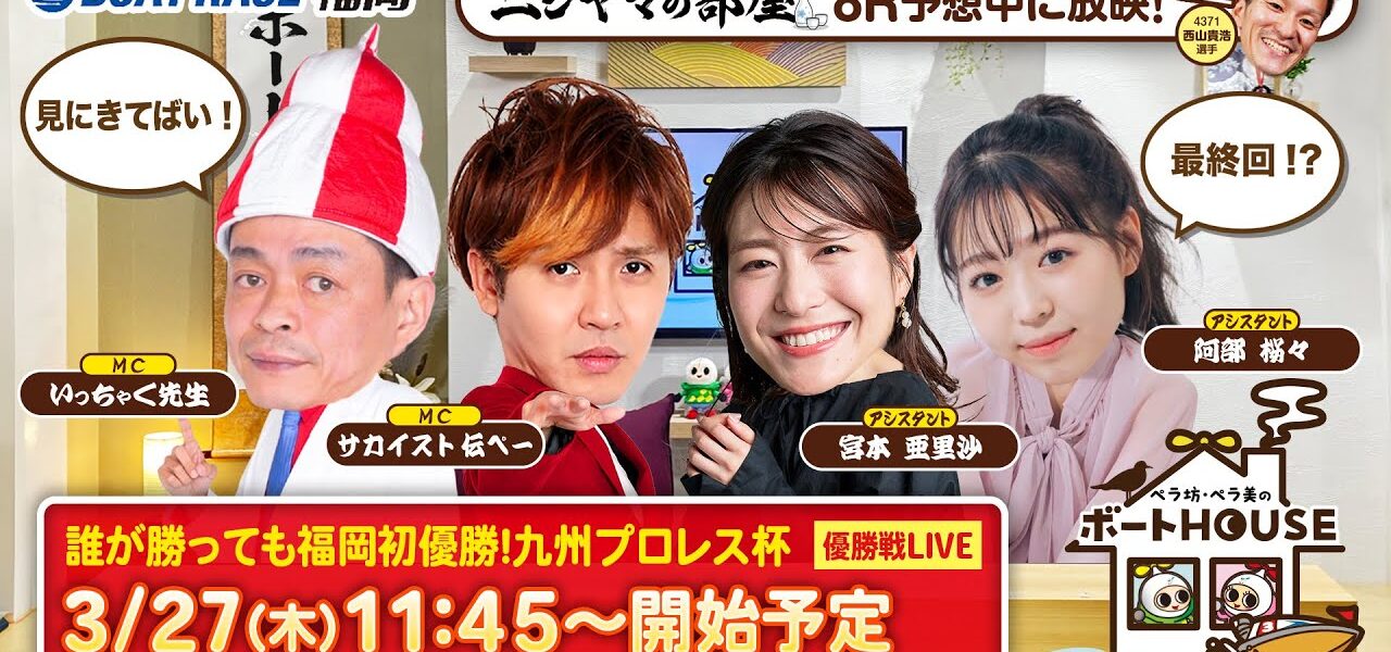 ボートレース福岡で開催される「誰が勝っても福岡初優勝!九州プロレス杯」6日目・優勝戦を4人で予想生配信。