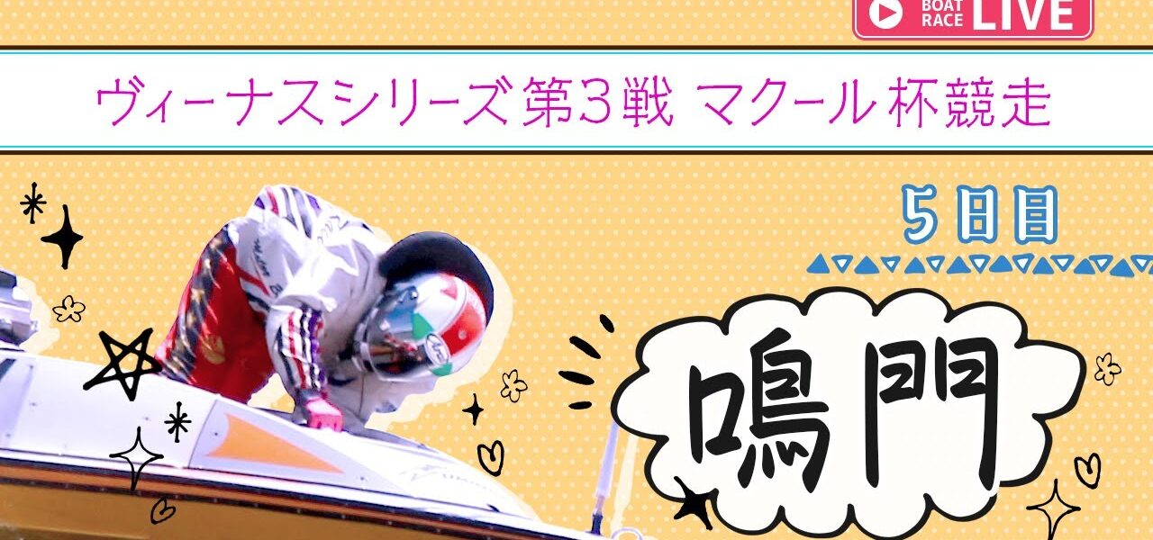 鳴門一般 ヴィーナスシリーズ第3戦 マクール杯競走 5日目 1〜12Rのレースライブを配信します。