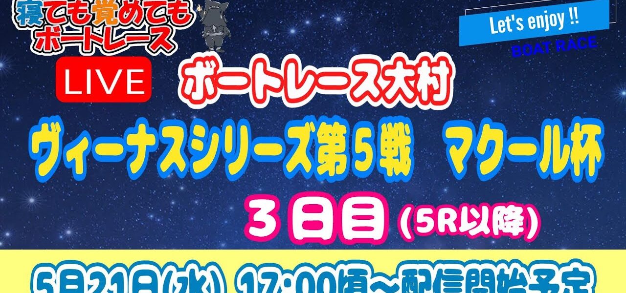 ボートレース大村 3日目 5R~ ライブ配信【ヴィーナスシリーズ第5戦 マクール杯】