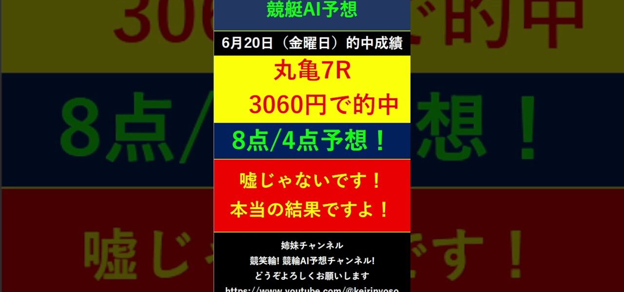 #Shorts【全ボートレースLIVE予想 】2025年6月20日予想分 結果のご案内です。ご視聴の皆様本日はお疲れ様でございました! また明日頑張りましょう! #競艇予想 #大予想
