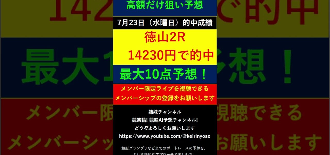 #Shorts【全ボートレースLIVE予想 高額だけ狙い予想】2025年7月23日予想分 結果のご案内です。ご視聴の皆様本日はお疲れ様でございました! また明日頑張りましょう! #競艇予想