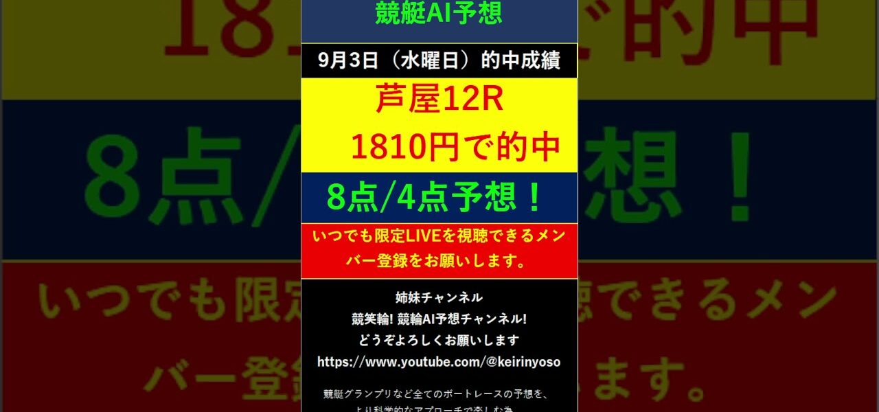 #Shorts【全ボートレースLIVE予想 】2025年9月3日予想分 結果のご案内です。ご視聴の皆様本日はお疲れ様でございました! また明日頑張りましょう! #競艇予想