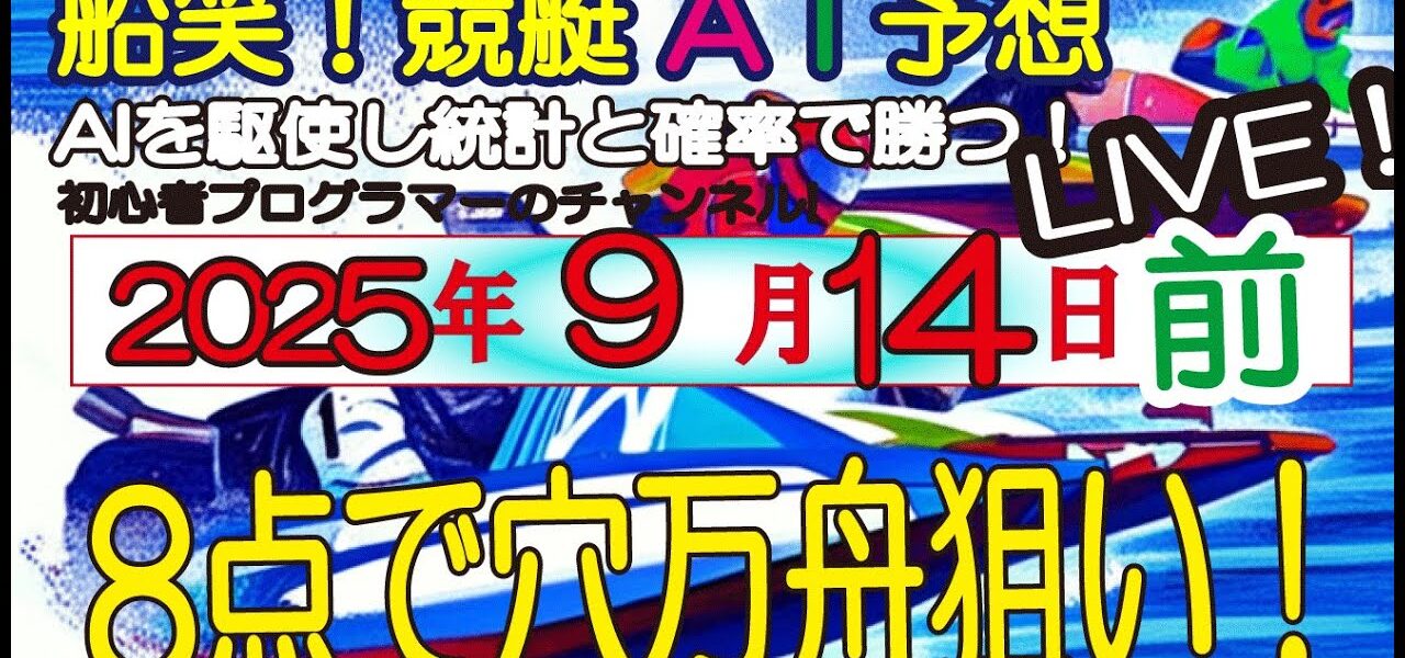 全ボートレースLIVE予想 前半戦 2025年9月14日(日) 船笑!競艇AI予想 初心者プログラマーのチャンネル! 穴万舟8点・低額3点勝負!
