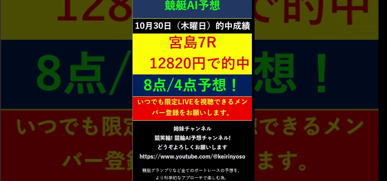 #Shorts【全ボートレースLIVE予想 】2025年10月30日予想分 結果のご案内です。ご視聴の皆様本日はお疲れ様でございました! また明日頑張りましょう! #競艇予想