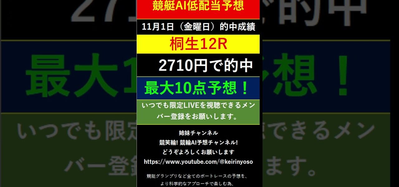 #Shorts【全ボートレースAI低額LIVE予想 】2025年10月31日予想分 抜粋結果のご案内です。ご視聴の皆様本日はお疲れ様でございました! また明日頑張りましょう!