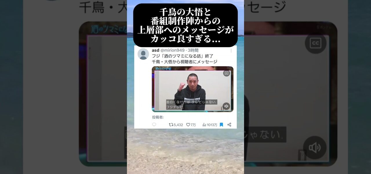 千鳥 大悟からフジテレビへの最後のメッセージがカッコ良すぎる… #フジテレビ #千鳥 #大悟 #酒のツマミになる話