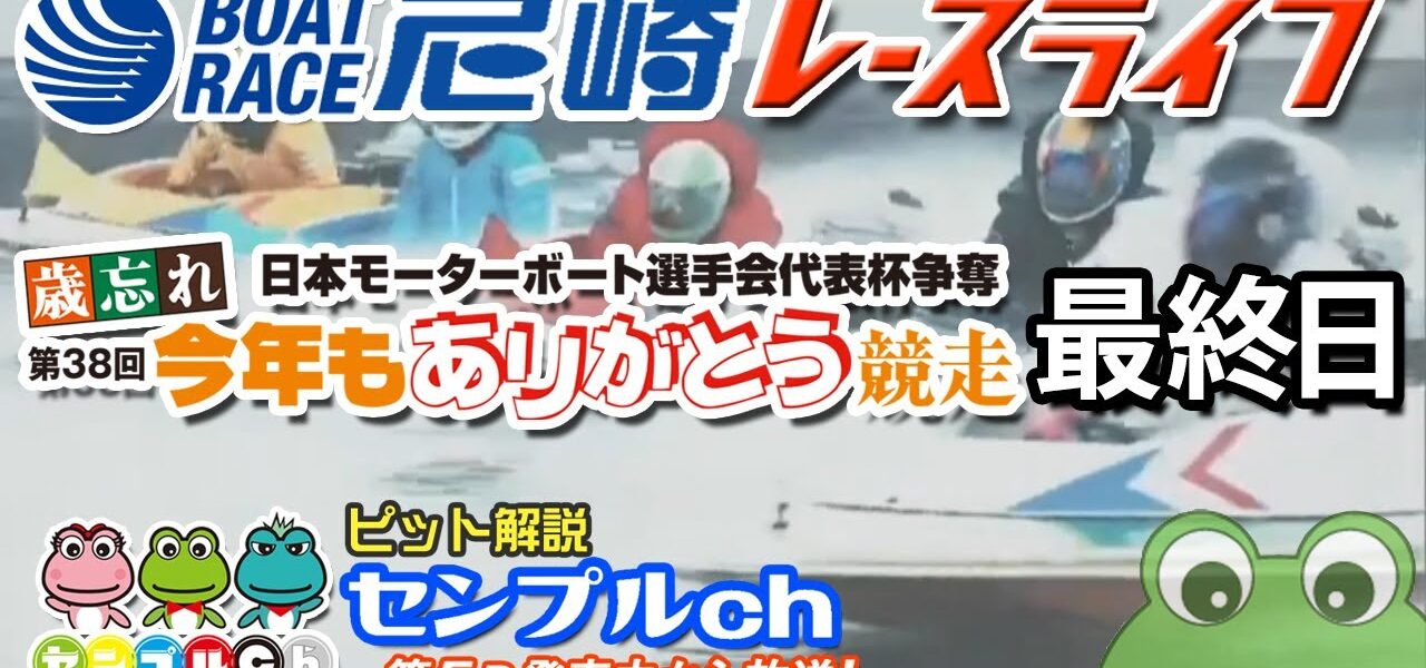 ホームページライブ日本MB選手会代表杯争奪 歳忘れ第38回今年もありがとう競走 最終日 ライブ 日本MB選手会代表杯争奪 歳忘れ第38回今年もありがとう競走 最終日 管理人 投稿日: 2025年12月30日 日本MB選手会代表杯争奪 歳忘れ第38回今年もありがとう競走 最終日 ===Twitter=== ▼ボートレース尼崎公式Twitter Tweets by AMABOATRACE ※生放送にはタイムラグが生じます。 舟券購入の際はご注意ください ※回線の環境上、映像の乱れや切断、大幅な遅延が生じる場合があります ※配信が重くなった場合はご視聴の画質を下げてご覧下さい ※誹謗中傷等のコメントはご遠慮ください。 #ボートレース尼崎 #生配信 共有: Facebook で共有するにはクリックしてください (新しいウィンドウで開きます) Facebook クリックして X で共有 (新しいウィンドウで開きます) X いいね:いいね 読み込み中… 返信する コメントをキャンセルメールアドレスが公開されることはありません。 ※ が付いている欄は必須項目ですコメント ※ 名前 ※ メール ※ サイト 次回のコメントで使用するためブラウザーに自分の名前、メールアドレス、サイトを保存する。 管理人 すべての投稿を表示 投稿ナビゲーション 前の投稿【別角度レース映像】大村PGⅠ第14回クイーンズクライマックス ロビーカムスペシャルライブ(4日目) 次の投稿【浜名湖レースライブ】2025年12月30日 静岡新聞社・静岡放送 New Year’s Cup 2日目 こちらの記事はいかがですか? ライブ ボートレースライブ 蛭子能収杯競争 優勝戦 6月25日(火) 【ボートレース鳴門】 管理人 2024年6月25日 ライブ 「第21回報知ローズカップ争奪戦」最終日 管理人 2023年1月25日 ライブ 「PLAY! BOAT! すなっち〜ずスタジアム」2/13 GⅠ中国地区選手権 優勝戦日(すなっちリーグ後期) 管理人 2025年2月13日 ライブ 【ボートレースライブ】芦屋G3 第12回ウエスタンヤング 初日 1〜12R【芦屋】 管理人 2025年6月15日