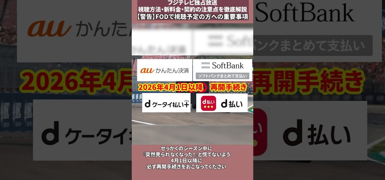 2026年から2030年まで、フジテレビはF1の日本国内独占放送・配信権を獲得しました。 本動画では、新時代に突入するF1を120%楽しむための視聴プラン、そして2026年4月からの料金改定やFODユーザー必見の注意事項を詳しく解説します。