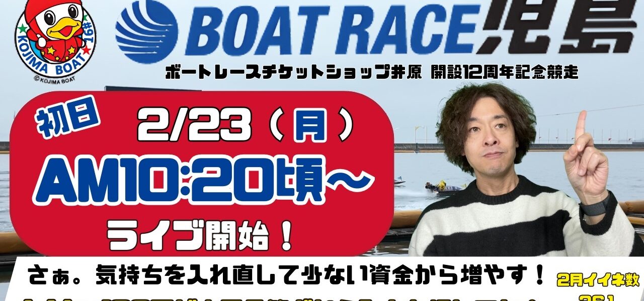 【LIVE予想】ボートレース児島 ボートレースチケットショップ井原 開設12周年記念競争 初日
