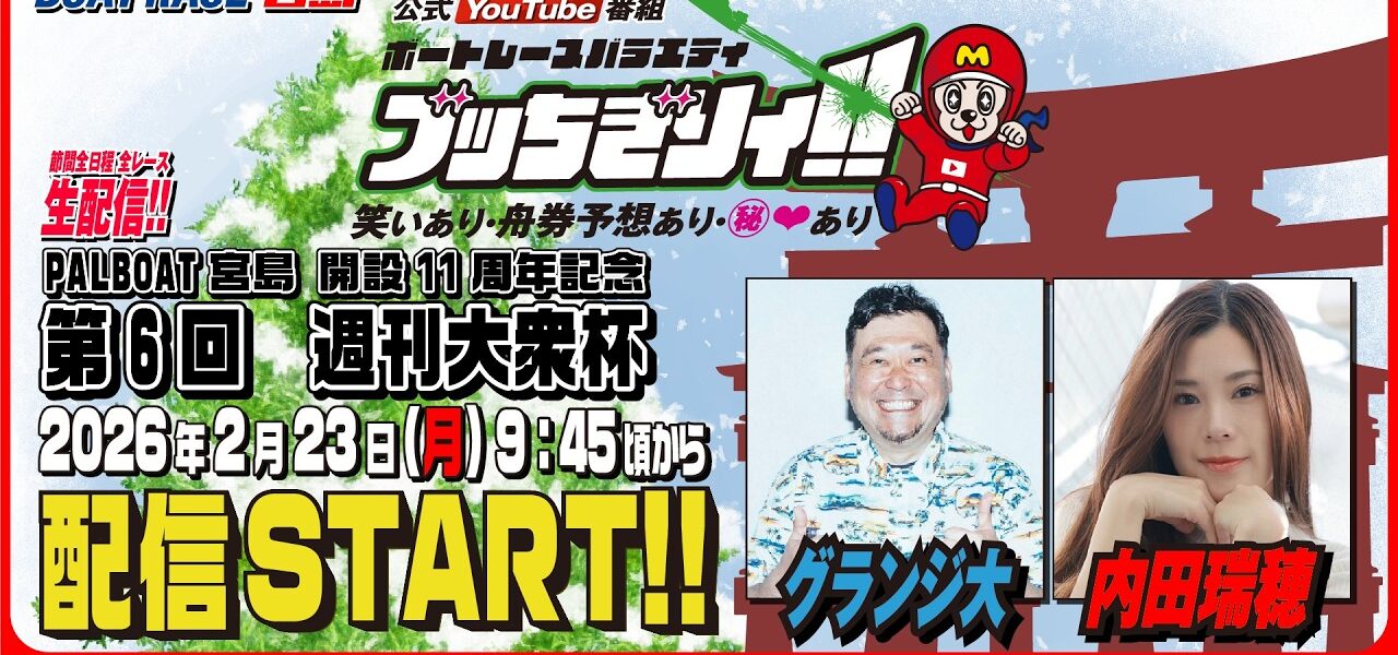 【ボートレース宮島 公式YouTube番組】 ボートレースバラエティ “ブッちぎりィ!!”【グランジ大&内田瑞穂】