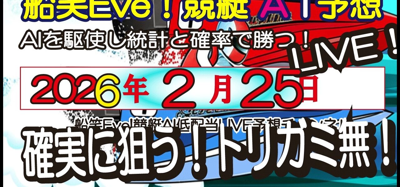 [全ボートレースAI低額LIVE予想 】 2026年2月25日(水) 船笑Eve!競艇AI低配当LIVE予想チャンネル 的中率重視!低配当のAIライブ予想!
