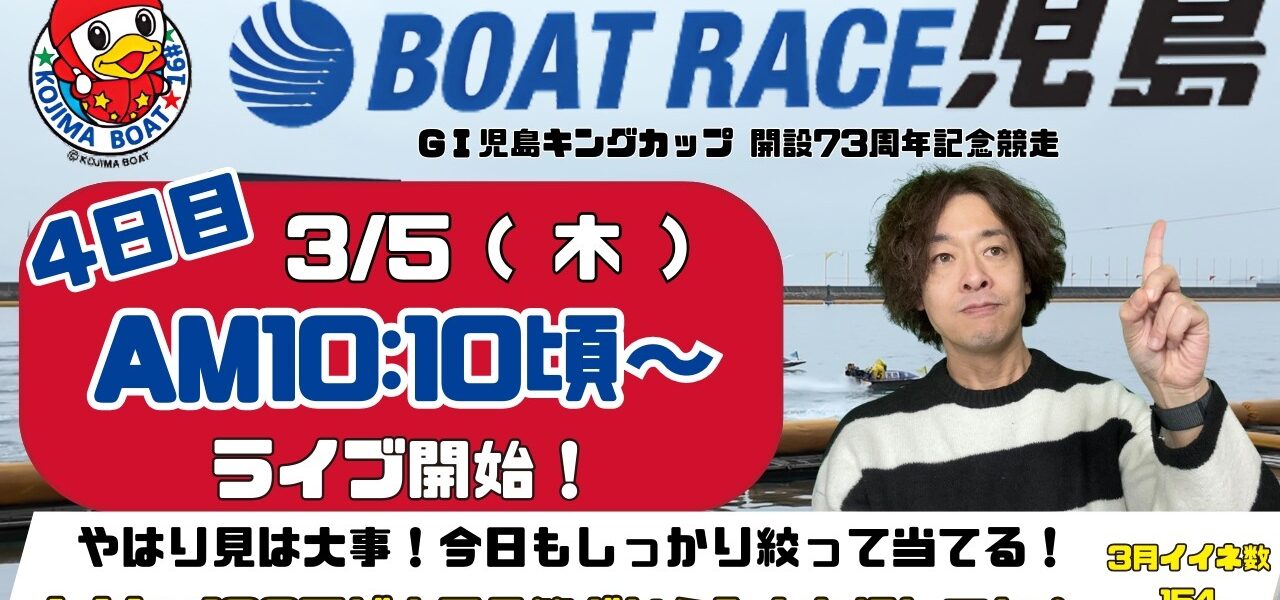 【LIVE予想】ボートレース児島 G1 キングカップ 開設73周年記念競争 4日目