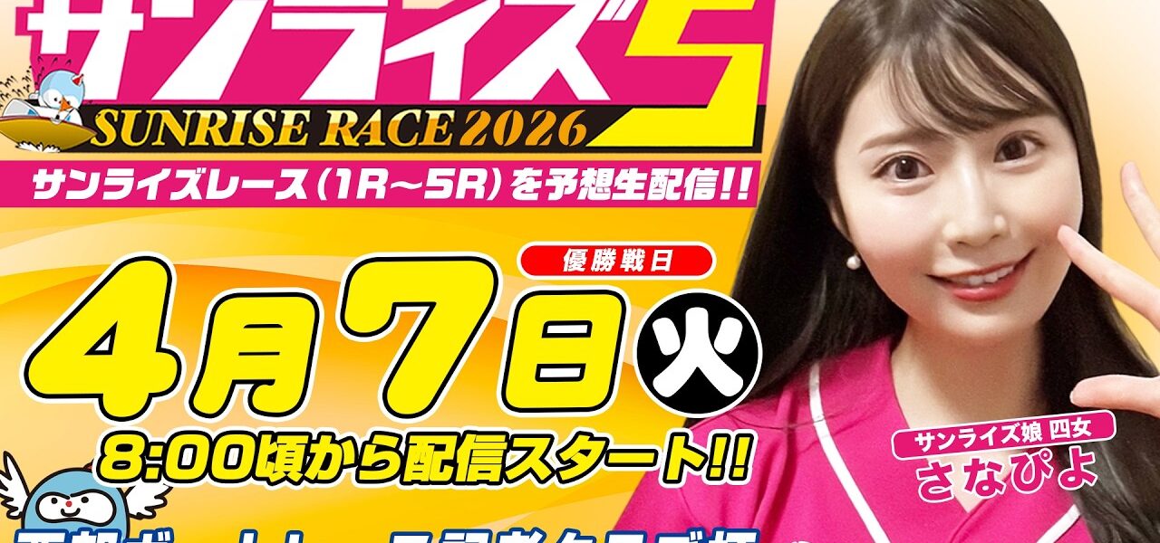 ※サンライズレース5レースを予想生配信、6レース以降は、レース映像を配信致します。