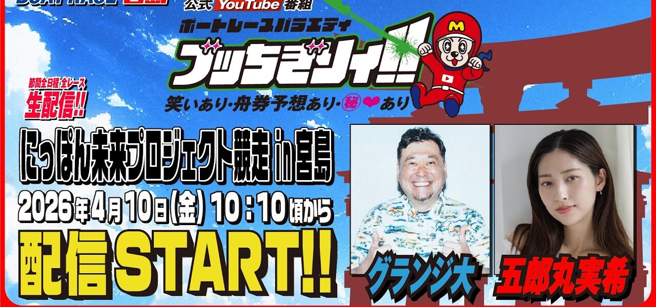 【ボートレース宮島 公式YouTube番組】 ボートレースバラエティ “ブッちぎりィ!!”【グランジ大&五郎丸美希】