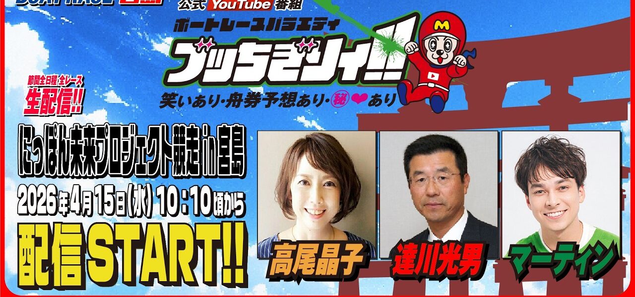 【ボートレース宮島 公式YouTube番組】 ボートレースバラエティ “ブッちぎりィ!!”【高尾晶子&達川光男&マーティン】