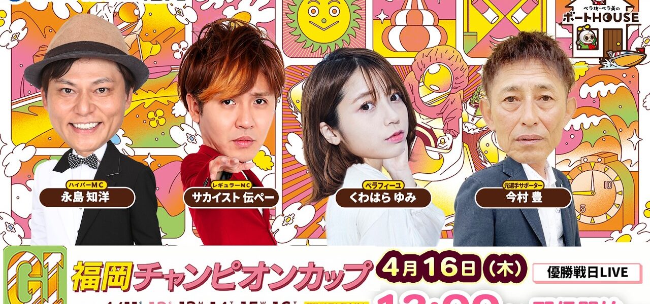 ボートレース福岡で開催される「GⅠ福岡チャンピオンカップ開設73周年記念競走」6日目 優勝戦を4人で予想生配信。