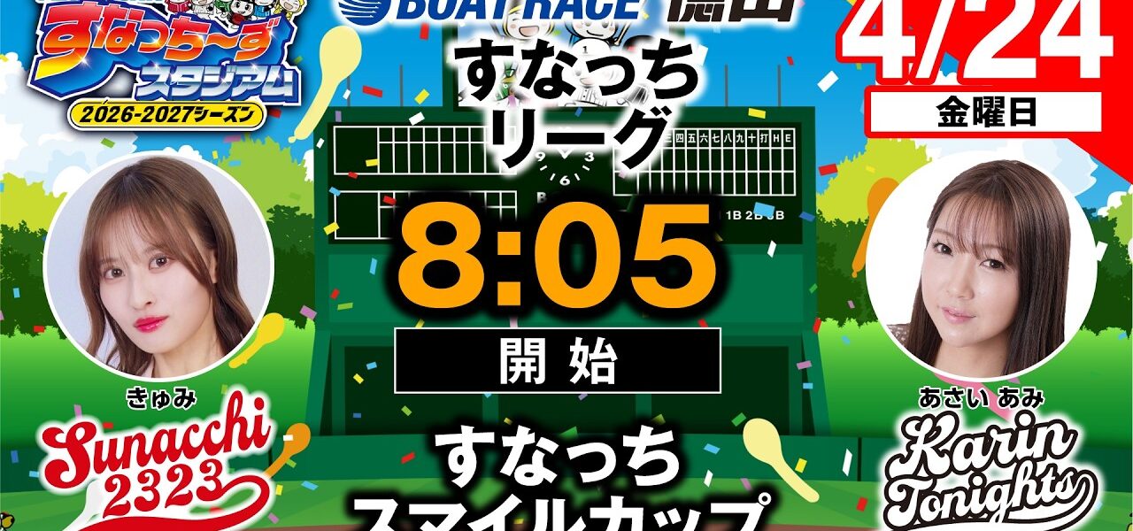 ボートレース徳山 視聴者参加型ライブ配信「PLAY! BOAT! すなっち〜ずスタジアム」1~12Rライブ配信!8:05頃から配信開始!