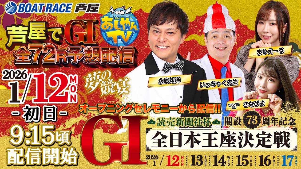 LIVE ボートレースLIVE からつ 平和島 びわこ 住之江 児島 宮島 若松 ソネちゃんTVサブ のライブ配信