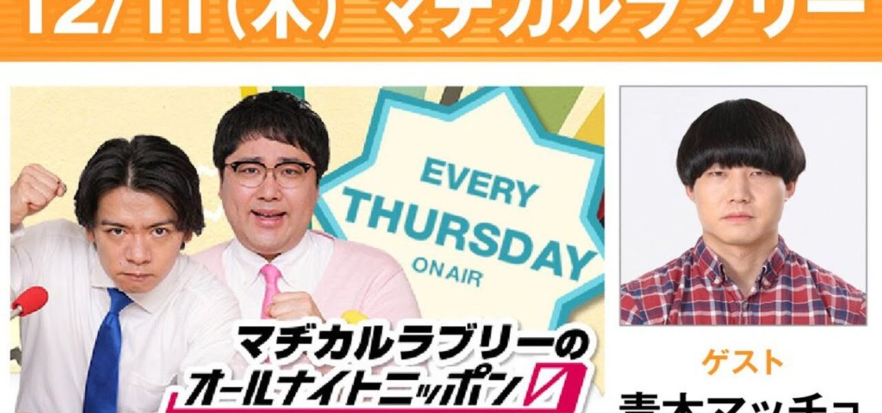 マヂカルラブリーのオールナイトニッポン0(ZERO) 2025.12.12 出演者 : マヂカルラブリー ゲスト:青木マッチョ(かけおち)